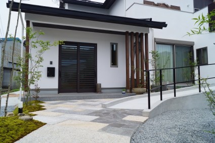 市川町にて、落ち着きと趣を感じる和モダンな新築外構が完成しました。