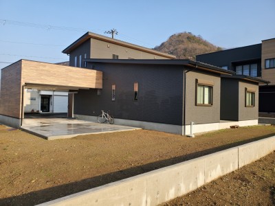 宍粟市山崎町にて、施主様のお父様(大工様)が建てられた和モダン住宅の外構工事を担当しました。