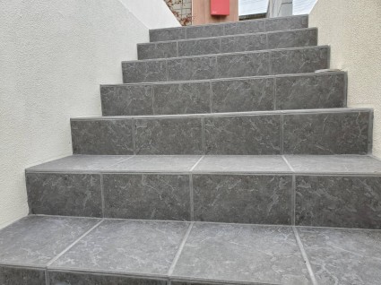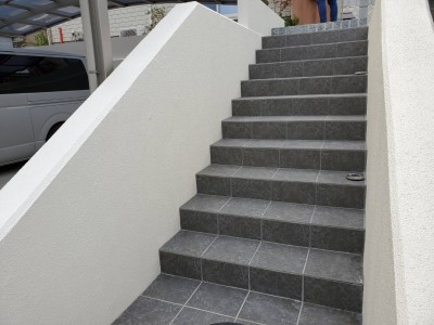 通るたびに気になっていた階段を、タイル貼りの美しい仕上げに変更し、毎日の通行が快適で気持ちの良い空間となりました。