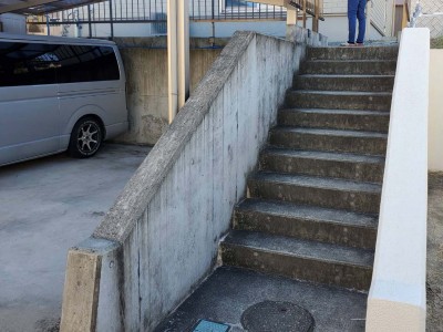 コンクリート擁壁やコンクリート階段は経年変化により汚れが生じるのは仕方のないことですが、汚れが気になるというお客様のお悩みでした。