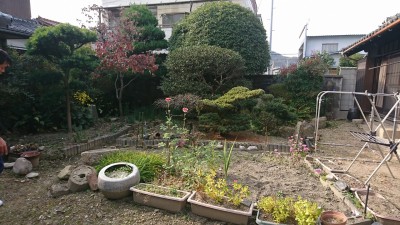 広すぎる庭には、花壇や畑スペースを縁石で区切られていましたが、段差が多く 高齢のお父様には危険を伴うお庭でした。
