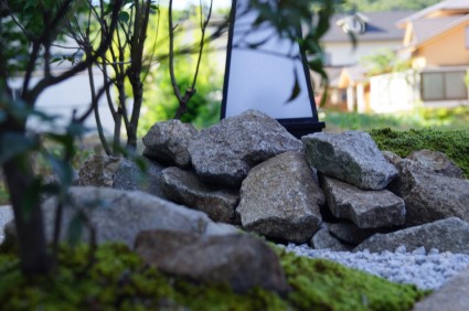 ノベ石を斜めにレイアウトすることで奥行きを生み、限られたスペースでも広がりを感じられる構成に。