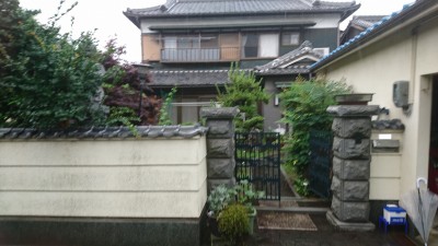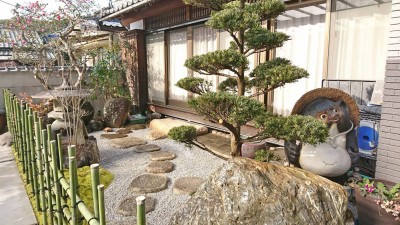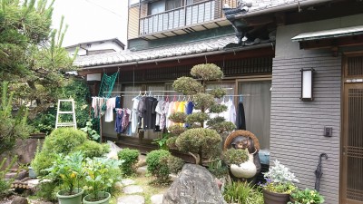 玄関脇の和庭スペース。 庭木が生い茂りゴチャついた印象でした。