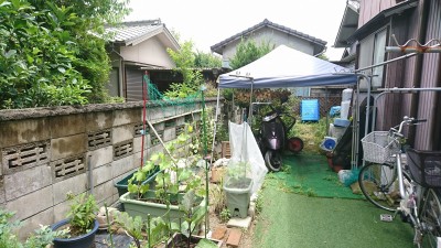 北面の裏庭は人工芝を敷いて雑草対策。 趣味の菜園やガーデニングを出来るお庭に…