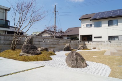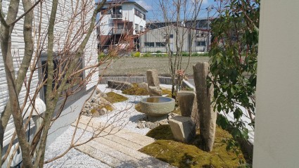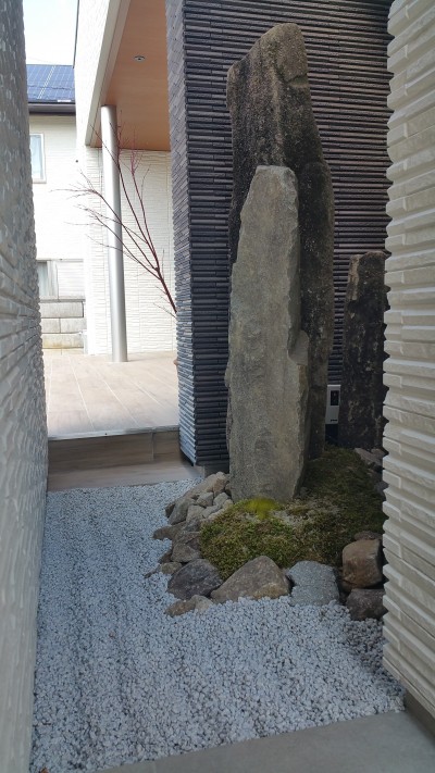 「石と苔を用いた枯山水の庭をつくりたい」との強いご希望を伺い、