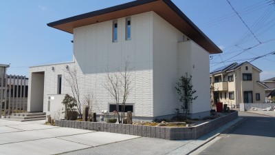 北側の道路から見える庭には自然樹形の雑木を配し、四季の移ろいを感じながら、やわらかな目隠しとしても機能する景観に。