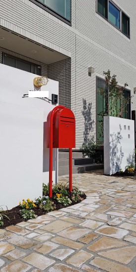 アンティークレンガのアプローチが重厚で落ち着いた趣を添え、訪れる人をやさしく迎えるお庭に仕上げました。