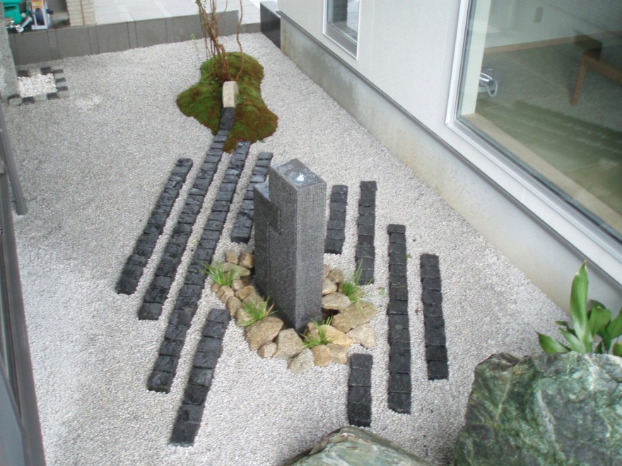 水が流れるクールでおしゃれな坪庭 姫路市 E様邸
