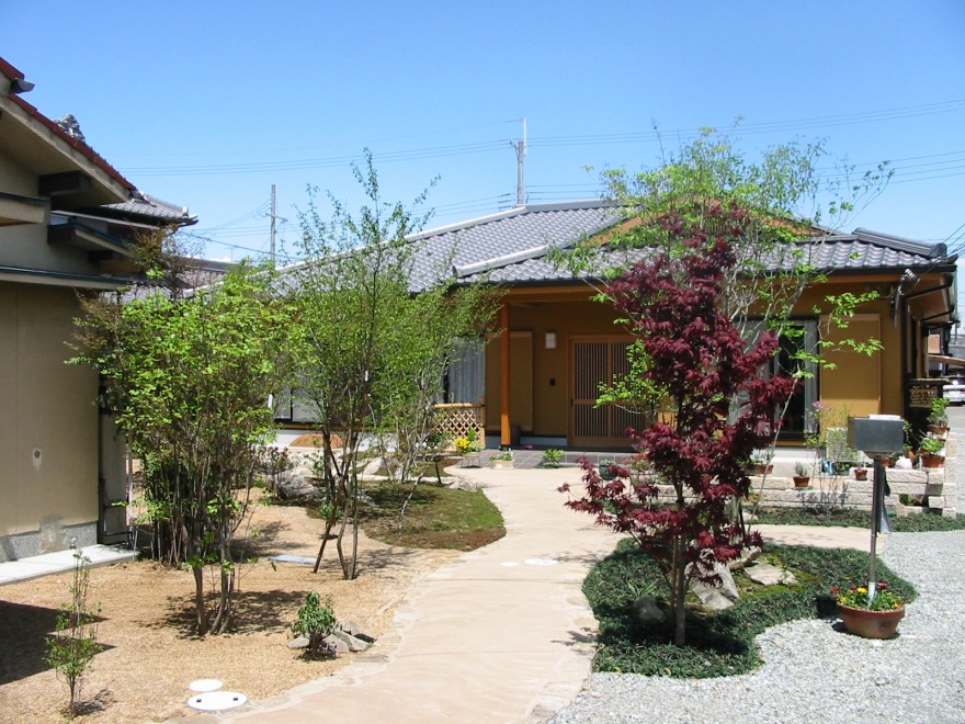 雑木に囲まれたアプローチは、緑のトンネルを抜けるような印象を与え、春の新緑、秋の紅葉、花の季節と、四季の移ろいを豊かに楽しめるお庭です。